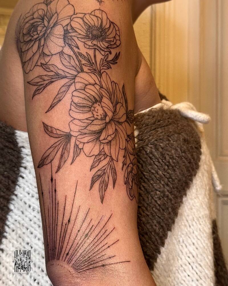 19.12.25 Letzte Woche durfte ich dieses schöne Customtattoo mit Anemonen, Pfingstrosen und Ornamenten tätowieren.