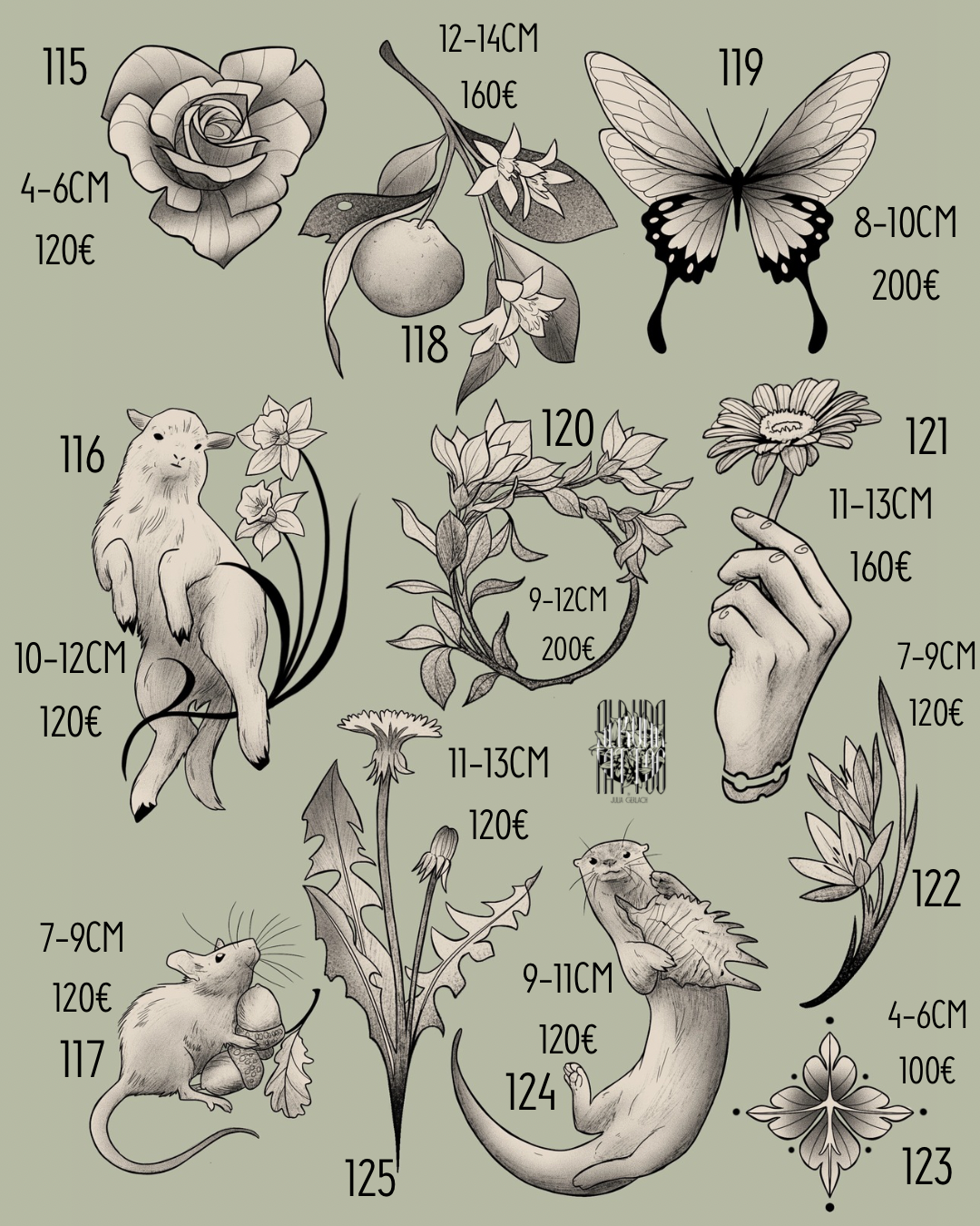 Falls euch eines der Motive gefällt, schreibt mir einfach eine Nachricht mit ungefährer Plazierungns- & Größenvorstellung, ggf. mit Budget an: alruna-tattoo@hotmail.com